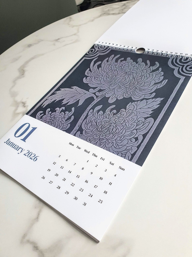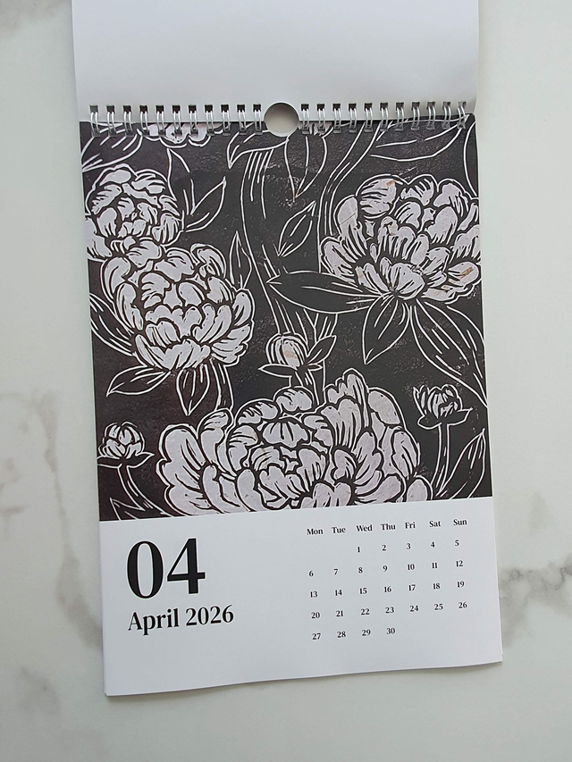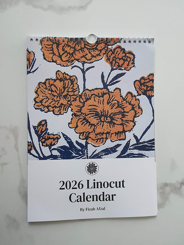 This calendar comes with a spiral bound and a loop at the top to hook anywhere and has been printed on Smooth Silk 170gsm! Also, this was designed and linoprinted by myself.