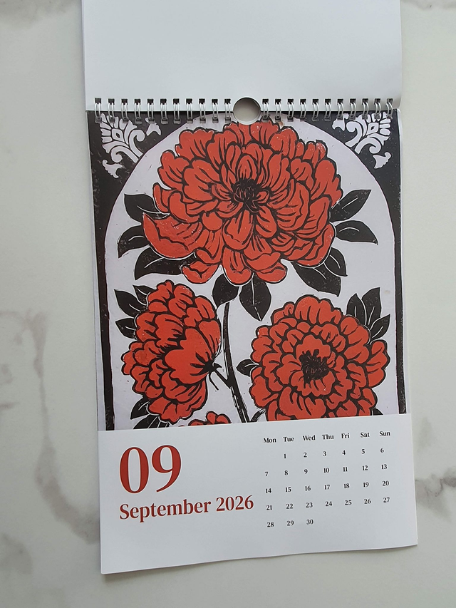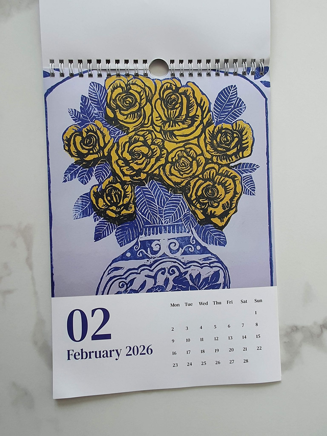 Introducing my 2026 calendar, featuring a linocut design for every month of the year!! I have tailored each print to fit each month so you'll have a unique design for your wall all year round!