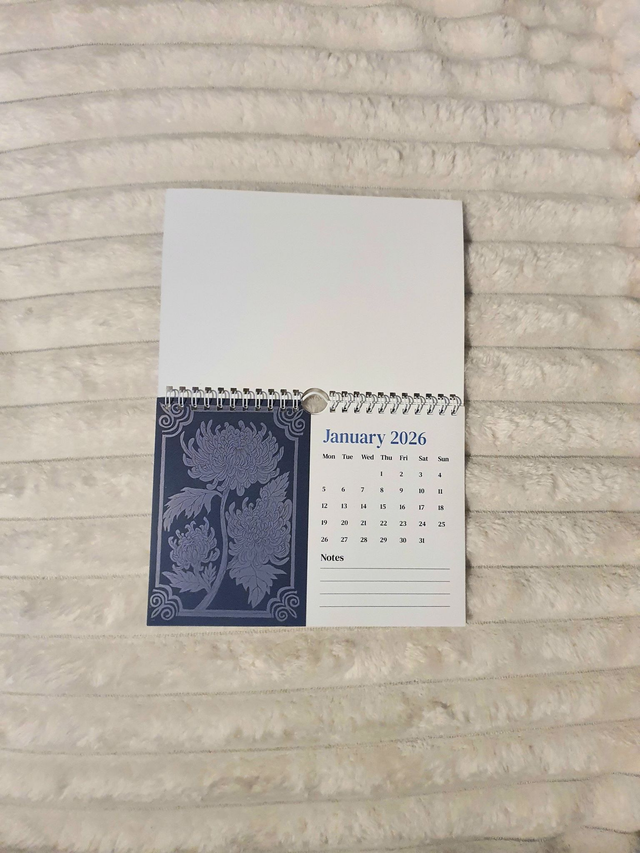 This calendar comes with a spiral bound and a loop at the top to hook anywhere and has been printed on Smooth Silk 170gsm! This calendar also features a handy notes section and is small enough to be used on both a desk and hung on the wall!