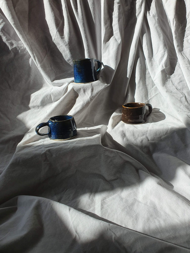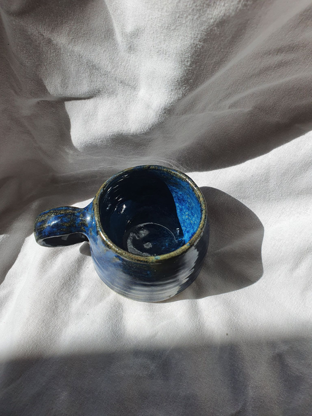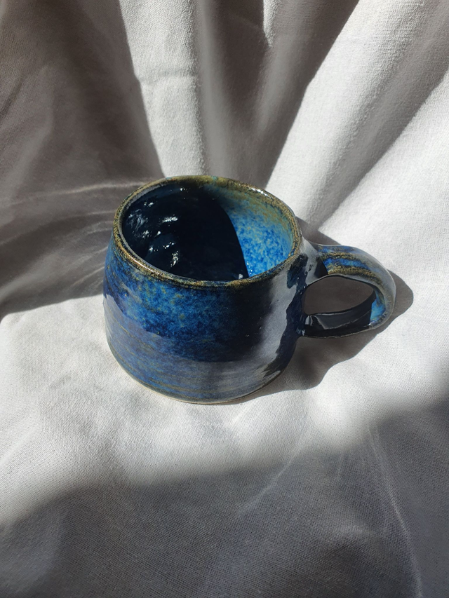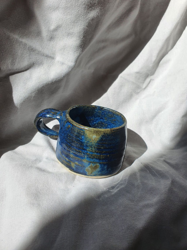 This mug has been thrown and glazed by myself using a very distinct chun blue glaze. This mug is approximately 10cm in diameter and 13cm in height.