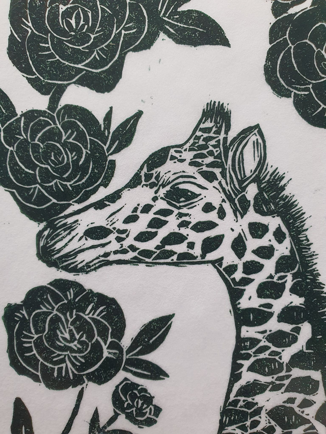 This handmade linocut print is made using high-quality oil-based inks and is printed onto washi paper. This print is approximately A5 in size.