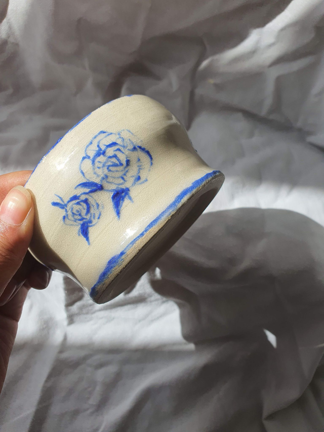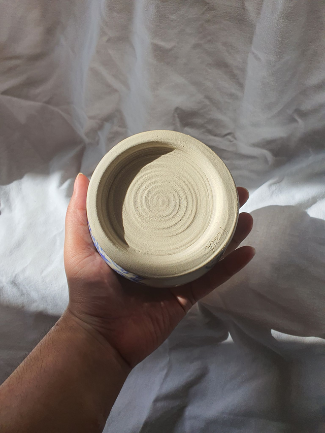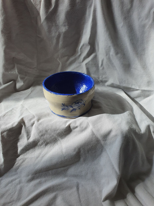 This bowl is a handmade ceramic bowl that has been thrown on the wheel and then handpainted with electric blue underglaze. This bowl is for decorative purposes.