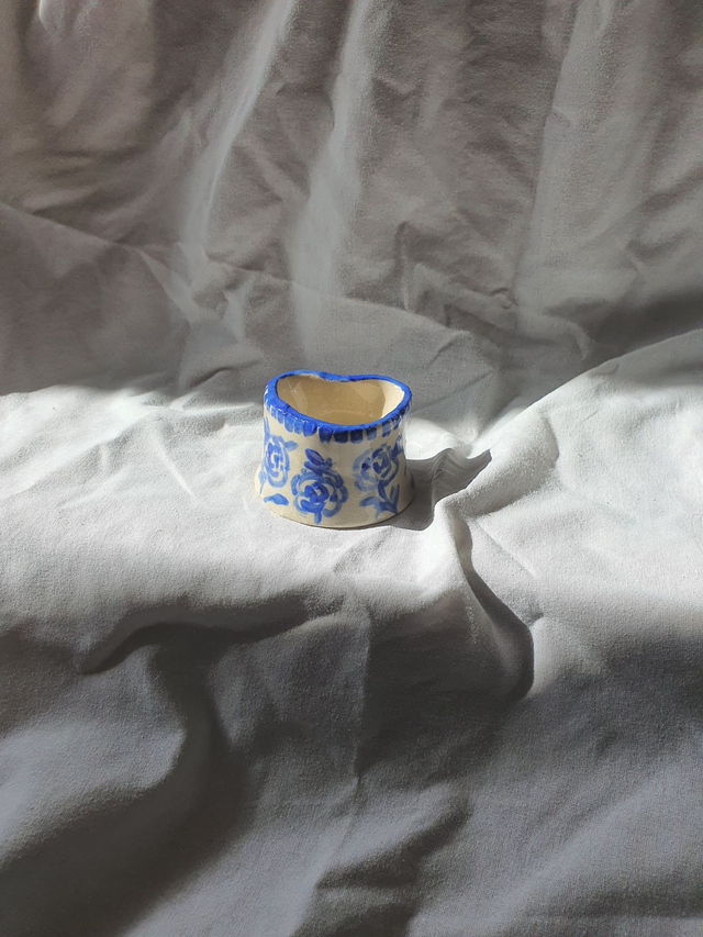 This dish is a handmade ceramic bowl that has been thrown on the wheel and then handpainted with electric blue underglaze. This dish is for decorative purposes and is ideal for keeping trinkets or as a candle holder!